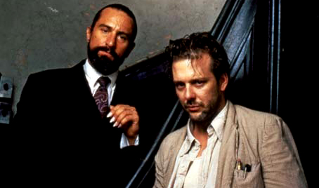 Toda la parrafada anterior viene al caso de una idea que ronda por la cabeza de un servidor desde hace años: la de las similitudes entre la película “El Corazón del Ángel” (“Angel Heart”, Alan Parker, 1987) y la serie de cómic “Hellblazer”. Para aquellos que no la hayan visto, contar que el film de Parker narra las desventuras del detective privado Harry Angel (Mickey Rourke), que por encargo de un misterioso cliente llamado Louis Cypher (Robert De Niro) se ve implicado en una siniestra y violenta trama relacionada con cultos vudú, magia negra y pactos con el diablo. Además de la sugerente y atmosférica dirección de Parker, sin duda lo más atractivo de la cinta lo supone su singular fusión de los géneros policiaco y terror. Fusión que ha caracterizado las andanzas del John Constantine desde que Alan Moore lo crease como secundario de “La Cosa del Pantano” allá por 1985. La forma en que Moore renovaba entonces los viejos tópicos del género del horror dándoles una vuelta de tuerca no queda muy lejos de la manera en que William Hjortsberg –autor de la novela que dio pie al film de Parker- revisaba el mito de Fausto pasándolo por el tamiz del cine negro. Aunque modelado a imagen y semejanza del cantante Sting, John Constantine tiene más de un punto en común con Harry Angel. No sólo por su vestimenta –camisa, gabardina y aspecto desaseado- sino también por su actitud: ambos no tienen reparo en jugar sucio y hacer malabarismos con el reglamento, compartiendo asimismo un ácido humor negro y la desgraciada cruz de provocar que aquellos que le rodean suelan acabar muy mal por el hecho de haberle conocido. Aunque Constantine no es un detective, sí es una figura en la que se dan cita elementos del género policiaco como su habilidad para los timos y sus frecuentes escarceos con lo peor toda clase de criminales. ¿Les parece rebuscado lo anterior? Pues aún hay más. La caracterización que De Niro luce en el film –barba poblada, larga melena, vistosos anillos adornando sus dedos, traje impecable y aspecto ominoso- recuerdan poderosamente al mismísimo Alan Moore, o al menos al Moore que conocemos a través de fotografías y grabaciones. La creciente actividad de este último como mago le pone en cierta forma a la par con el personaje de Cypher, quien resulta ser… (evitaremos el spoiler). Un parecido puramente casual ciertamente pero muy inquietante.