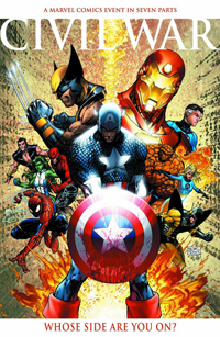 Ante tal panorama, no cabía otra opción que la división de los superhéroes en dos bandos: los pro-registro con Iron Man, Hank Pym y Spiderman a la cabeza; y los que estaban en contra, con el Capitán América y Daredevil como líderes. Comenzó entonces la acertada campaña de marketing en la que se implicaba directamete al lector: "¿Y tú, de que bando estás?" Mientras muchos aún se lo pensaban, se libró la primera batalla en una emboscada tendida por el grupo de Iron Man al equipo del Capi. La sensación que se le quedaba al lector tras asistir esta brutal pelea era que ya no había vuelta atrás. Estos dos amigos y aliados durante tantas décadas jamás volverían a confiar el uno en el otro.