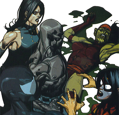 Mientras, los héroes que se mantenían fuera de la ley formaban su propio equipo de Vengadores, liderados por Luke Cage y con Spiderman, Lobezno, Ronin y el Dr Extraño en sus filas, entre otros. Cada grupo aparecía en cada una de las colecciones de Los Vengadores, ambas escritas por Bian Michaels Bendis, un escritor que por aquel entonces ya se había convertido en el guionista del momento en Marvel junto a Mark Millar.