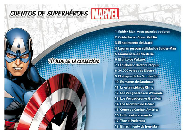 Según se puede leer en su apartado de promociones, la colección está dirigida a los más pequeños y consistirá en una serie de libros que incluyen juegos, actividades y pegatinas. Cada uno de ellos tendrá como figura protagonista a un héroe distinto del Universo de la Casa de las Ideas.