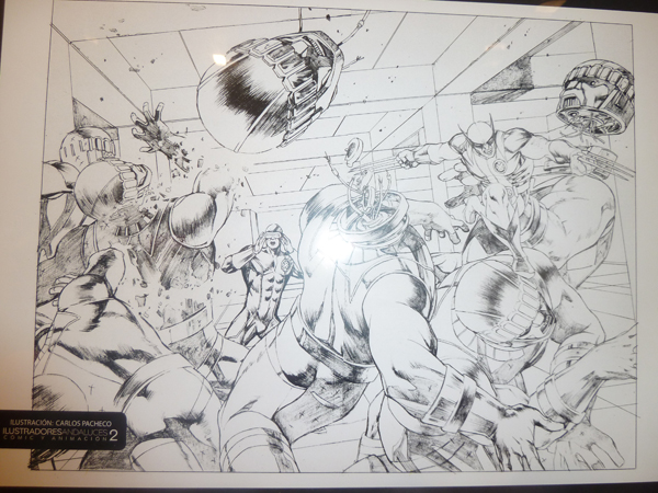También había repartidos por todo el salón grandes paneles donde se podían observar bocetos y dibujos de conocidos autores andaluces, como Carlos Pacheco, Jesús Merino o Alberto Belmonte. Además, un espacio de dichos paneles era dedicado a homenajear al arquitecto Manuel Jaén, un brillante ilustrador cuya titánica labor sigue siendo desconocida.