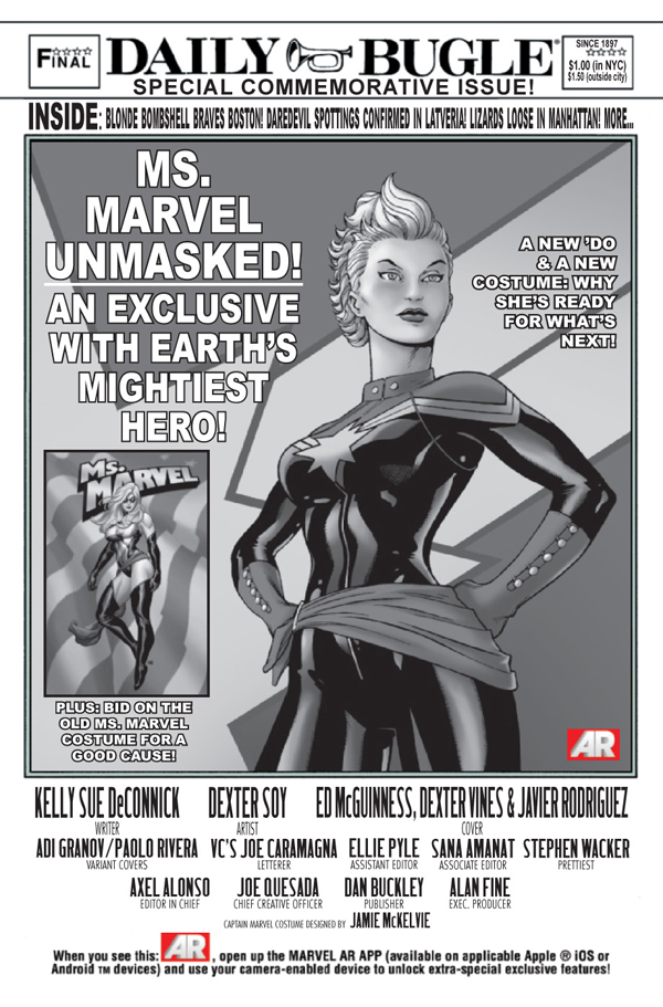 Kelly Sue DeConnick y Dexter Soy se encargan de esta nueva versión de Danvers que, en palabras de la guionista, nos muestra "una mujer nueva, repleta de poder y con la conciencia tranquila por primera vez en su vida. Nuestra Carol tiene una nueva identidad, una nueva misión y todo el poder necesario para llevarla a cabo."