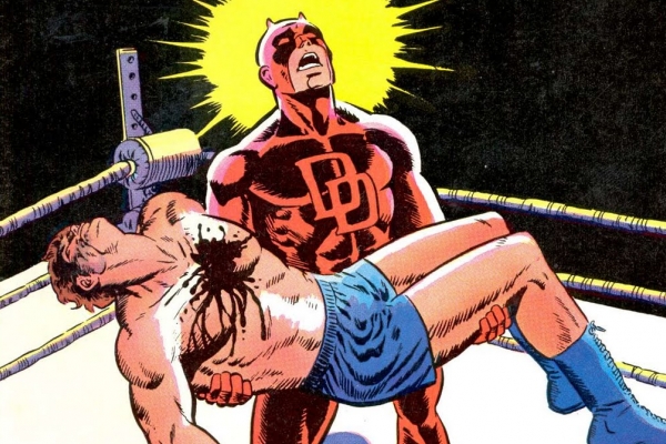 Daredevil es una serie y un personaje marcados a fuego por un nombre: Frank Miller. A principios de los 80, cuando las ventas acercaban a la serie a su cancelación, un casi novato Miller tomó las riendas de la serie. Como nadie esperaba nada de una colección que tenia los días contados, el futuro creador de Sin City pudo hacer y deshacer a su antojo, acercando la serie a los temas y estilo que le interesaban. Así, Miller acercó Daredevil a los ambientes y estilos de su querida serie negra, aumentando el tono de intriga, los ambientes policiacos y la visión fatalista y trágica de sus protagonistas. Los trajes coloridos y los poderes fantásticos quedaban en segundo plano frente a la sordidez urbana y villanos inquietantemente realistas como Kingpin. Esta visión, unida a cierta pátina de cultura oriental (Stick, los ninjas de la Mano), redimensionó al personaje cara a toda su trayectoria posterior.