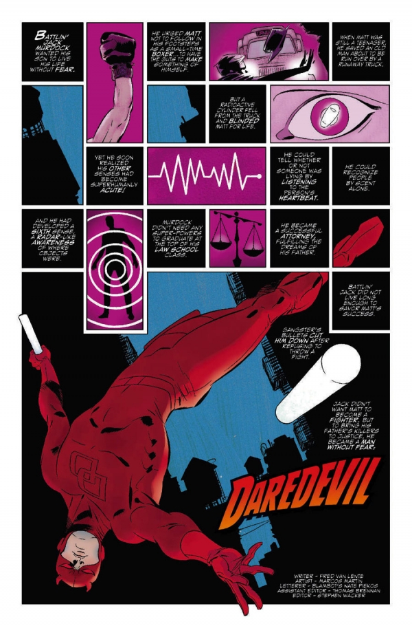 No es que el enfoque impuesto por Miller sea malo. De hecho las mejores historias del personaje han sido escritas conforme al mismo (incluida Born Again, LA HISTORIA por excelencia del personaje). Tampoco es cuestión de no saber utilizar las herramientas legadas por Miller: las magníficas etapas de Ann Nocenti y John Romita Jr o la más reciente de Brian Bendis y Alex Maleev así lo demuestran. El problema reside en que, pese a que ese enfoque no es el único válido, a veces parece ser el único posible. Ello ha dado pie a etapas del personaje (como las de Dan Chichester en los 90 o la recién concluida de Andy Diggle) que, sin ser despreciables e incluso contar con algunos hallazgos inspirados, parecen limitarse a reproducir mecánicamente la plantilla creada por Miller.