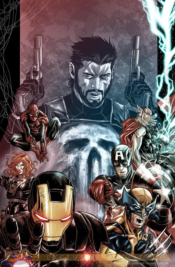 La portada de Marco Chechetto para el segundo número de War Zone desvela nuevos looks para algunos de los más importantes héroes Marvel. Sin embargo, difieren de los presentados en la ilustración de Joe Quesada ¿Con cuáles nos quedamos? Como ya os comentamos, en la serie los Vengadores deciden acabar de una vez con Frank Castle y su sangrienta cruzada contra el crimen.