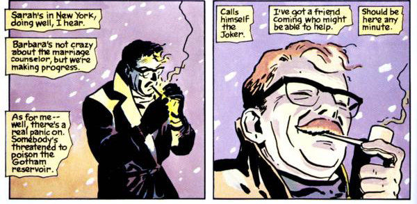 Pero las lecturas e investigaciones del cineasta en la mitología del murciélago no acaban aquí. Podemos observar muchas, muchas más ideas sacadas de las viñetas publicadas a lo largo de la historia de Batman. Del número de 1940 Batman #1, Nolan reprodujo la escena en la que el Joker se disfraza de policía para cometer un asesinato, mientras que de The Dark Knight Returns reprodujo la escena en la que son los propios ciudadanos los que combaten el crimen (aunque este tipo de dilemas morales están siempre muy presentes en toda la filmografía de Nolan). Volviendo a Batman Año Uno, la escena final en la que el Caballero Oscuro salva al hijo de Gordon es muy parecida a la del film. Y de Batman: La Broma Asesina, toma la idea de llevar a un héroe hasta su límite: en el cómic fue Gordon quién sufrió los delirios del Joker, en el cine fue Dent.