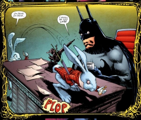 Y, tras este recorrido cultural, vamos a centrarnos en lo que nos ocupa. El guionista Bruce Jones, con más de cuarenta años de excelentes trabajos a sus espaldas, toma los personajes de Alicia y los amalgama perfectamente con el inquietante reparto de héroes y villanos de Gotham City. La extraña muerte de importantes figuras de la vida política de la ciudad llevan a Batman a iniciar una investigación que lo sumergirá en los bajos fondos y en la que lo acompañará una amiga de la infancia de Bruce Wayne ¿El problema? La chica en cuestión murió años atrás y las visiones que acosan a nuestro héroe podrían llevarlo a un camino sin retorno.