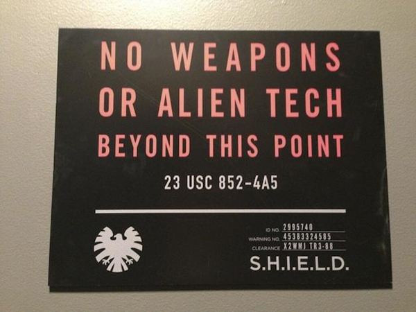 La esperada adaptación a la pequeña pantalla ya está rodando su piloto con Joss Whedon de nuevo al frente. Aquí os dejamos una de sus primeras imágenes oficiales, la de un cartel que nos advierte de la prohibición de llevar armas o tecnología alienígena a partir de ese punto. Para mucha más información sobre la serie, estad atentos a la aparición del nuevo número de nuestra revista Fandigital dentro de muy poco. Seguiremos informando...