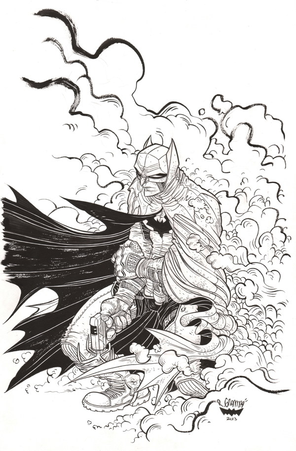 Un impresionante Batman es el centro de esta magnífica pieza por encargo que el gran Rafael Grampa ha realizado para un encantado fan. Por suerte para nosotros, este ha tenido a bien compartirla con el resto de pobres mortales