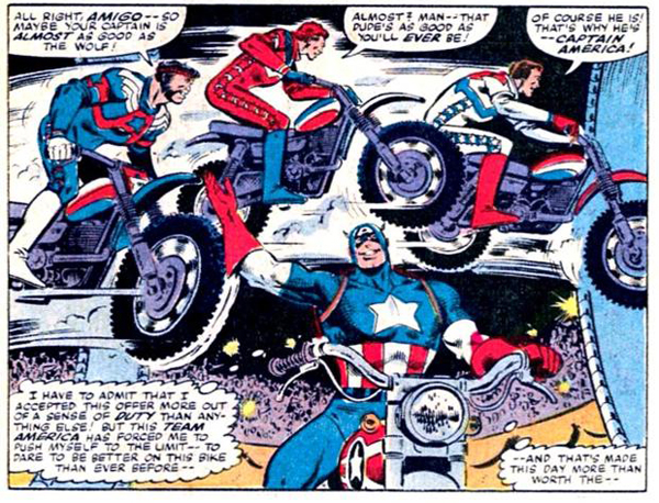 La acción dejará también espacio para el romance, ya que una de las tramas que se fue construyendo durante toda la etapa fue el romance de Steve Rogers y Bernie Rosenthal, y resulta especialmente curioso ver como DeMatteis se esfuerza por darle normalidad a las escenas en que aparecen juntos, como cuando les vemos salir de un cine en el que acaban de ver la última película de Indiana Jones.
