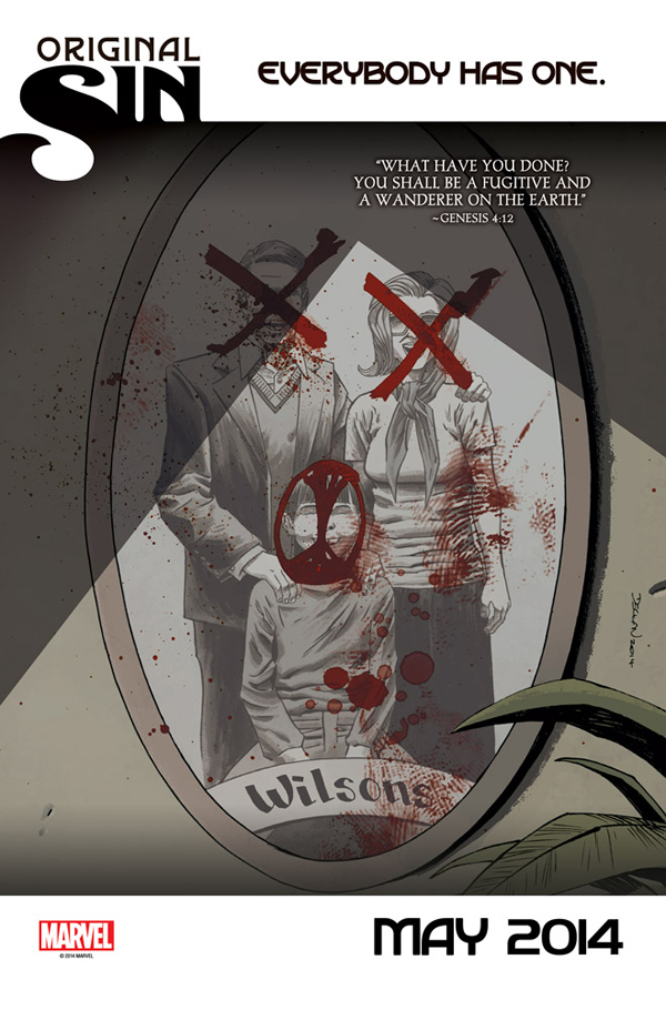 Marvel continúa presentando piezas publicitarias de la esperada nueva saga Original Sin. Ahora es el turno de Masacre con este siniestro teaser dibujado por Declan Shalvey que nos lleva a la infancia de Wade Wilson. La cita bíblica utilizada para la ocasión es el castigo impuesto por Dios a Caín tras asesinar este a su hermano Abel.