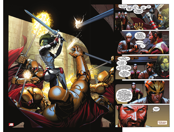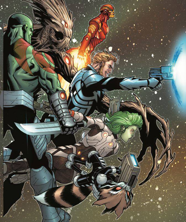 Sin embargo, había algo más que Bendis quería hacer en su etapa Marvel Now! Aquellos extraños luchadores cósmicos que habían sido presentados de nuevo al público por Dan Abnett y Andy Lanning en una exitosa etapa y que, de la noche a la mañana, habían pasado a primera división debido a su inclusión dentro de la Segunda Fase de películas marvelianas, atraían al guionista de extraña manera.