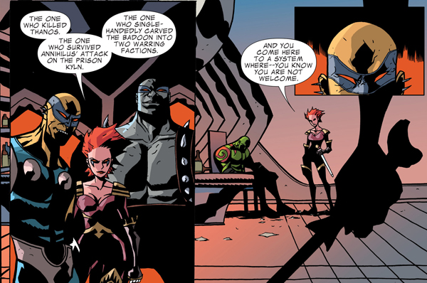 El personal Mike del Mundo es el encargado de los relatos de Gamora y Groot y sus originales lápices consiguen dar un aspecto alienígena y dinámico a las páginas de las que se encarga. Bendis ha asegurado que el parentesco de Gamora con el brutal Thanos será una de las piezas fundamentales de esta encarnación del personaje y lo demuestra en el capítulo dedicado a ella, que nos prepara para la vuelta del Tirano Cósmico en la saga Infinito.