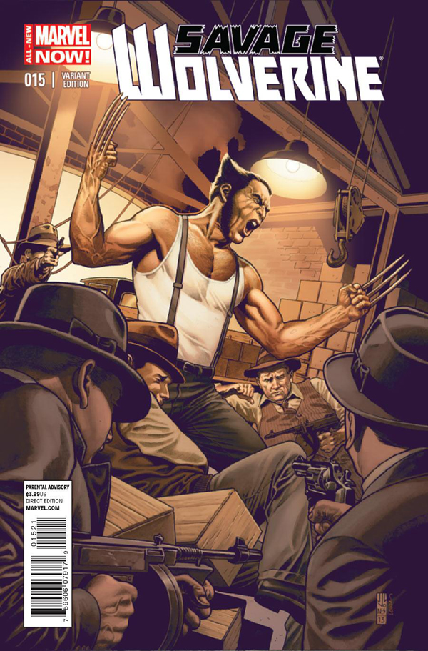 Richard Isanove, uno de los grandes coloristas de los últimos años reconvertido en fantástico ilustrador de la mano de La Torre Oscura de Stephen King en su adaptación Marvel, es este mes el artista encargado de narrar una historia alternativa de Logan dentro de sus serie secundaria, en esta ocasión encuadrada en el periodo de la Ley Seca. Películas como Los Intocables de Elliot Ness (The Untouchables. Brian de Palma, 1987) han mitificado dicho periodo, por lo que resultaba extraño que hasta ahora ningún autor decidiese situar a lo grande al mutante de las garras de adamantium en dichos años. O mejor dicho, deberíamos decir “el mutante de las garras de hueso”, pues esta aventura tiene lugar antes del Proyecto Arma-X, siendo más cercana en el tiempo a lo que hemos podido leer también en los últimos meses en las páginas de Lobezno: Origen II. Estamos en 1933, en Ontario, Canadá, y un confundido James Howlett trata de ganarse la vida como contrabandista. Escapando de la policía junto a uno de sus amigos, se cruza en el camino una peligrosa banda de mafiosos que pone en peligro la vida de las únicas personas a las que ha podido llamar familia en mucho tiempo...