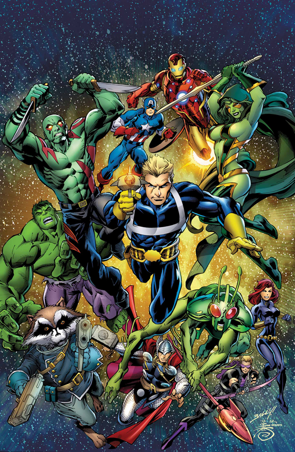 Sin embargo, por razones nunca del todo explicadas, este dúo creativo fue obligado a cerrar la serie tras solo veinticinco entregas, dándole un abrupto fin a sus tramas en la miniserie El Imperativo Thanos. Todo parece indicar que, con el anuncio de una versión cinematográfica, la editorial consideró que la cabecera merecía unos autores más mediáticos. Poco importaba la calidad de Abnett y Lanning. O que dicha película estuviese basada específicamente en su trabajo. Sea como sea, poco después se anunciaba una nueva serie a cargo de Brian Bendis y Steve McNiven. Un trabajo más que correcto pero que -polémicas sobre personajes ajenos aparte- hasta la fecha parece más un simple merchandising del citado film que una obra con entidad propia. Es de esperar que el éxito de la película abra nuevas temáticas en los films Marvel, pero no estaría mal que se permitiese a ambos guionistas recuperar su antigua posición como cronistas del grupo. De momento habrá que contentarse con una nueva cabecera sobre la encarnación original del grupo firmada por Abnett. Menos da una piedra.