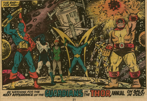 La primera encarnación de los Guardianes de la Galaxia -muy diferente a la actual- se presentó en el lejano Marvel Superheroes #18 (1969) de mano de Arnold Drake y Gene Colan |