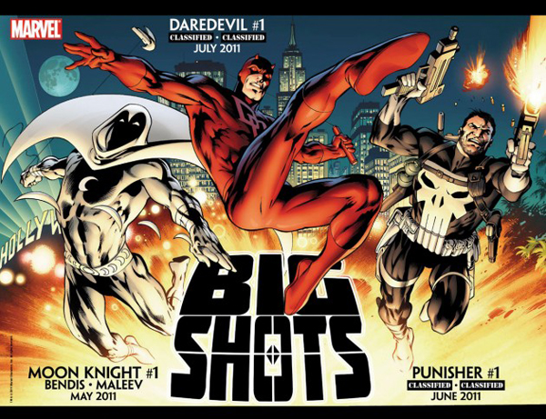 Con Tierra de Sombras, Andy Diggle subsana la deuda contraída con este segmento del universo Marvel, creando un evento exclusivo para este tipo de personajes (salvo una aparición algo gratuita de Lobezno y la poco desarrollada presencia del Motorista Fantasma). Partiendo de un singular contexto legado por Ed Brubaker (Daredevil como líder de la Mano), el creador de Los Perdedores ha llevado a Matt Murdock a una situación insólita que además sirve a la editorial para relanzar su sección urbana. Dejando aparte la evolución de Daredevil desde el inicio de la línea Marvel Knights hasta el punto sin retorno al que le guía Diggle (algo que bien se merece un artículo aparte) resulta sorprendente que nadie le haya sacado antes partido a la Marvel callejera a nivel global. Hay que remontarse a añejas historias de Spiderman como La Venganza de Medianoche para encontrar algo remotamente parecido. Lejos de embrollos dimensionales y temporales, de seres alienígenas y elementos mágicos o de batallas a gran escala se estaba dejando escapar un contexto de suspense y acción, de traiciones, intrigas y luchas cuerpo a cuerpo, de agradecidas ambientaciones de serie negra con tonos quizá no más realistas pero sí más verosímiles y el protagonismo de personajes con carisma y potencial pero generalmente infravalorados y/o infrautilizados. En la línea Ultimate Brian Bendis y Mark Bagley así lo entendieron con sagas del hombre araña definitivo como Guerreros y Ultimate Knights, pero aún faltaba que el universo Marvel tradicional se aplicase el cuento. Independientemente de sus aciertos y sus fallos, hay que alabar Tierra de Sombras por su reivindicación de esta parte del cosmos editorial, facilitando asimismo el relanzamiento de los héroes callejeros bajo el epígrafe Big Shots (que a los más veteranos sin duda recuerda como este tipo de series eran conocidas como Big Guns allá en los años 90). Junto a incorporaciones de nuevo cuño como un nuevo Power Man y añadidos inesperados como Pantera Negra (tomando el lugar y la numeración del cuernecitos) a punto de empezar con fuerzas renovadas esperan títulos a priori tan interesantes como Caballero Luna de Bendis y Alex Maleev, Punisher por Greg Rucka y Marco Checchetto o Héroes de Alquiler con el tándem Dan Abnett & Andy Lanning más Brad Walker al dibujo. ¿Y Daredevil? Pues queda en las siempre competentes manos de Mark Waid (con Paolo Rivera y Marcos Martin) en lo que parece un cambio de tono y dirección más cercano al Daredevil pre-Miller que al oscuro enfoque empleado por los últimos guionistas y llevado al extremo en la ya mentada Tierra de Sombras. Aún con ciertas reservas, la Marvel más callejera parece haber regresado para quedarse. Y servidor, quien siempre la ha considerado más atractiva que otros segmentos más populares, se alegra por ello.