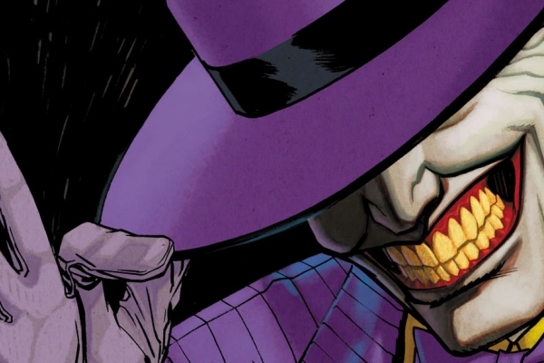 Batman finaliza este mes la serie semanal Batman Eternal, mientras que la serie de Snyder sigue acaparando toda la atención gracias al regreso del payaso del crimen. Dave Johnson se inspira en la película "La Máscara" de Jim Carrey para darnos esta peculiar versión.