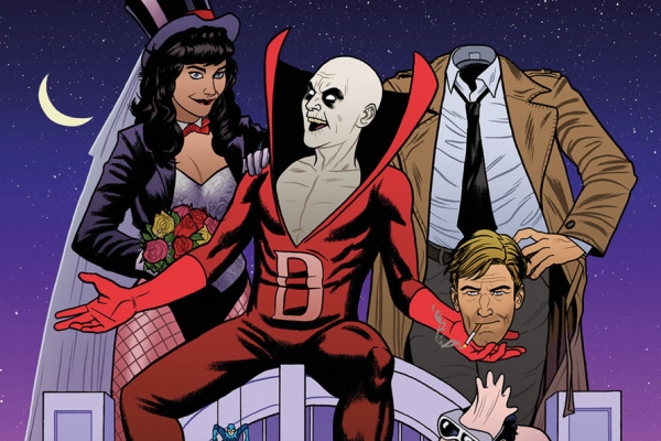 Joe Quiñones no esconde su alma ochentera, y convierte a Deadman en protagonista de "Beetlejuice", el popular film de Tim Burton, para regalarnos esta divertida versión de los héroes de la Liga de la Justicia Oscura.