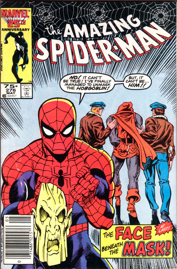 Después de miles de páginas de continuos enfrentamientos con El Duende, ha llegado la hora de desvelar uno de los secretos mejor guardados y descubrir la sorprendente verdad bajo la máscara. No desvelaremos aquí su identidad, a pesar de que se trate de material clásico, pero sí que supuso un verdadero acontecimiento cuando el número se publicó por primera vez en junio de 1987, años antes de que internet arruinara todas las sorpresas sin esperar siquiera a que los cómics llegaran a los kioskos. No en vano, como recoge Julian M. Clemente en la introducción del tomo, fueron muchas las opciones que barajaron diversos guionistas para la editorial, incluyendo opciones tan inverosímiles como Flash Thompson o Ned Leeds, para finalmente acudir al entonces guionista primerizo Peter David para que solucionara las complicadas tramas que los sustitutos de Roger Stern al guión de la serie habían ido desarrollando tras su marcha.