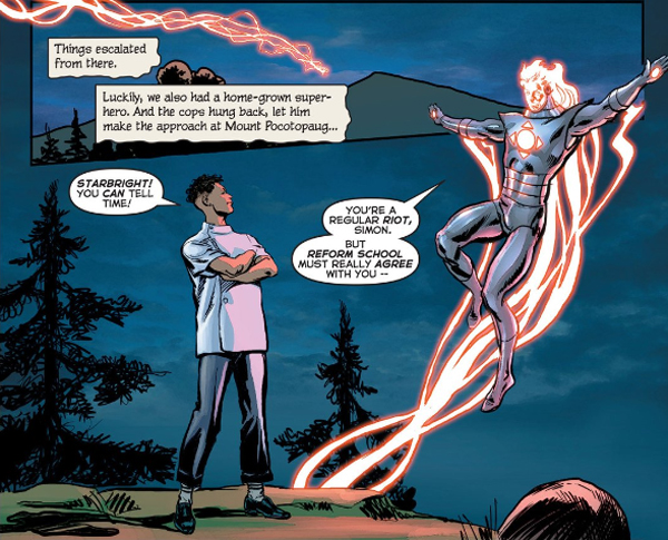 Junto a nuevas historias como la dedicada a Ellie Jimson y sus robots, o a Starbright y su némesis, destaca la entrega que abre el tomo, donde Busiek desgrana hora por hora lo que acontece en la superheróica ciudad. Cada una de las páginas del episodio tiene lugar en una hora diferente, detallando los eventos que poco a poco se irán relacionando para contarnos una historia de mayor envergadura. Un nuevo ejemplo de la brillantez de Busiek como guionista que, lejos de utilizar esquemas manidos a la hora de enfocar sus relatos, reinventa la serie a la menor oportunidad.