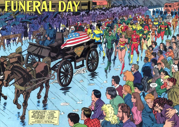 Tras su espléndido relanzamiento a manos de John Byrne en la segunda mitad de los 80, las series dedicadas al último hijo de Krypton –Action Comics, Superman, Superman: Man of Steel y Superman Adventures- habían quedado a cargo de una plantilla de guionistas –Dan Jurgens, Roger Stern, Louise Simonson, Jerry Ordway- y dibujantes –John Bogdanove, Jackson Guice, Tom Grummett y el citado Jurgens- que pese a su buen hacer no pudieron impedir un descenso de las ventas. El impredecible panorama de los 90 impuso la necesidad de un revulsivo que volviese a poner al personaje en el candelero. El aplazamiento de los planes sobre la boda de Clark Kent y Lois Lane -debido al estreno de la serie televisiva Lois & Clark (ABC 1993-1997)- dispuso el escenario. Enfrentados a un año en blanco en sus series, los guionistas necesitaban una historia que capaz de rellenar ese hueco y, al mismo tiempo, atraer en masa a los lectores. Una historia tan inusual como matarle. La expectación desatada por semejante ocurrencia, antes incluso de publicarse un solo número, indicó a los responsables que habían dado en el clavo.