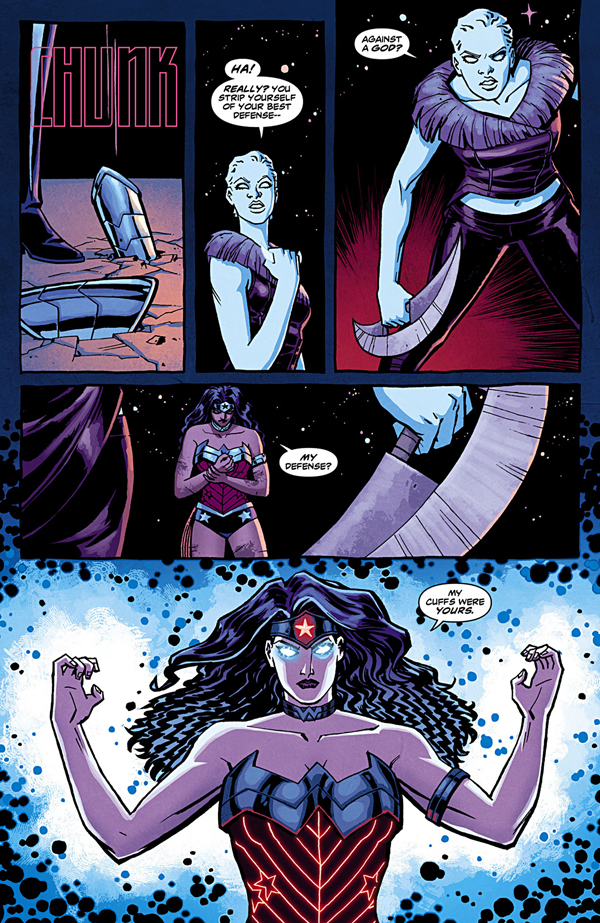 ECC nos trae ahora el segundo recopilatorio en tapa dura, en el que Diana y su peculiar grupo continúen la búsqueda de Zola, lo que les llevará hasta Eros y Hefesto, y a conocer el terrible destino de aquellos hijos de las amazonas que nacen varones. De nuevo, Cliff Chiang hace un excelente trabajo modernizando el aspecto de los dioses y dándoles un look desenfadado y actual, que despierta siempre el interés del lector. En este caso, el dibujante cuenta con la ayuda de Tony Atkins y de Kano, que le sustituyen cada uno en un número. Sin embargo, ambos artistas han sabido mimetizarse bien con el estilo de Chiang, de forma que el lector apenas note el cambio de manos en los lápices, y pueda disfrutar de la lectura sin mayores complicaciones.
