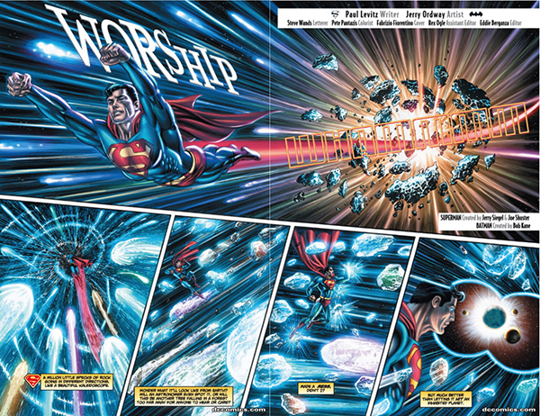 El voluminoso tomo que pone punto y final a la cabecera se abre con una historia en tres entregas firmada por los veteranos Paul Levitz y Jerry Ordway, quen han escrito muchas páginas doradas de la historia de DC. El guionista aprovecharía la entrega 75 de la colección para traer a sus páginas a la Legión de Superhéroes. Además, lo hará acompañado de dibujates de auténtico lujo como David Finch o Adam Hughes, que nos regala una espectacular página doble que acompaña esta reseña, que dan ganas de enmarcar. Los fans de Levitz están de enhorabuena, ya que el tomo también incluye el cuarto anual de la serie, también escrito por él.