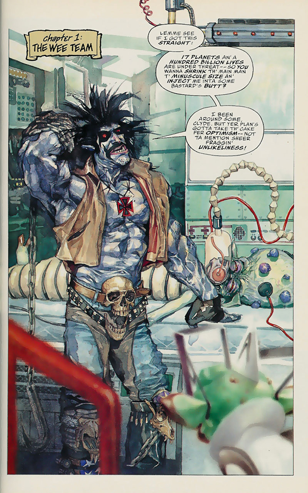 Al dibujo tenemos a un heterogéneo grupo de artistas, formado por Ariel Olivetti, Alex Ronald o nuestro compatriota Rafael Garrés, y hasta Norm Breyfogle se pasea por estas páginas, imaginamos que debido a la amistad que le une a Grant desde que ambos se hicieran cargo de una de las mejores etapas de Batman. Los seguidores del personaje saben lo que van a encontrarse en estas páginas, nuevas aventuras con exceso de violencia, humor negro y bastante mala leche; y los que nunca hayan probado, pueden animarse teniendo en cuenta que para disfrutar de las aventuras de Lobo no es necesario tener un enciclopédico conocimiento del personaje, sólo ganas de pasárselo bien.