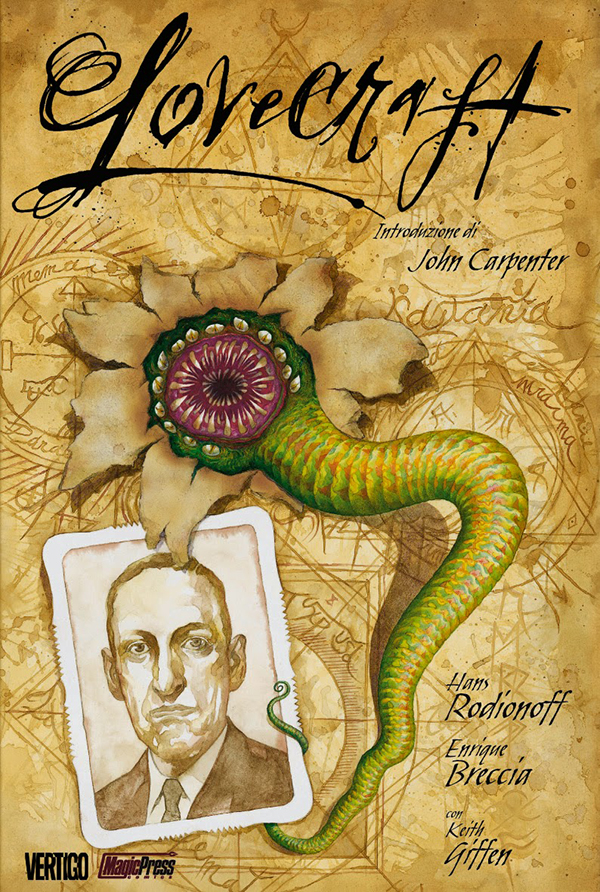 -Lovecraft (DC Comics); partiendo de un guión originalmente escrito para cine por Hans Rodionoff adaptado por Keith Giffen, este especial constituye una de las joyas menos conocidas de la recientemente desaparecida línea Vértigo. Mezclando elementos de la vida real del propio Lovecraft (su torturado linaje familiar, su infancia como niño enfermizo, su peculiar matrimonio) con otros provenientes de sus historias esta “biografía ficticia” logra emborronar la línea entre realidad y ficción haciendo ver que la relación entre ambas puede ser inquietantemente fina. La guinda la pone un Enrique Breccia tomando el relevo de su propio padre Alberto mediante un detallado grafismo que tiene su punto fuerte en el uso pictórico del color como instrumento para definir realidad y ficción.
