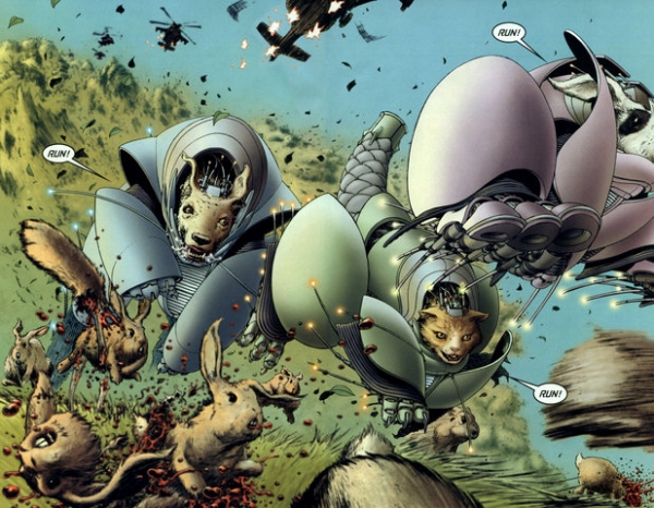Para ilustrar las aventuras de este grupo formado por un perro, un gato y un conejo; Morrison contó con Frank Quitely (The Authority, New X-Men, JLA Tierra 2) facturando algunas de las páginas más espectaculares de su carrera, jugando con todo lo que tiene a mano: perspectivas, ángulos imposibles, planos mareantes y unas composiciones de páginas que eleva el resultado final hasta sobresaliente.