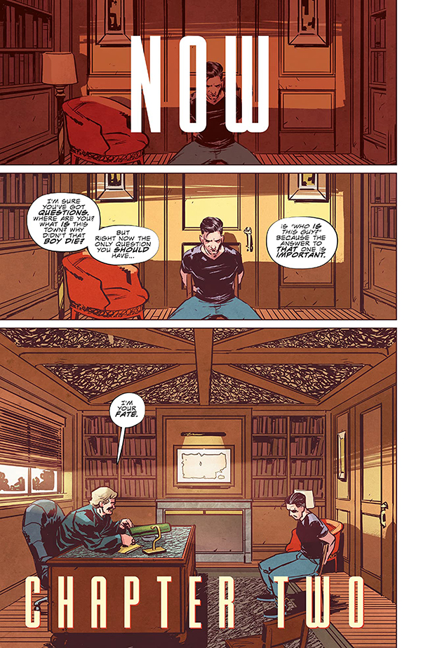 Daniel, nuestro protagonista, llega al pueblo atraído por una falsa herencia, pero se encuentra rodeado por las sorpresas: su madre sigue viva y presenta el mismo aspecto que cuando él era niño, y la única razón de que haya podido crecer y vivir una vida normal es que ella consiguió sacarle de Stillwater cuando era pequeño. Al mismo tiempo que los lectores, comenzará a conocer los entresijos de esta peculiar comunidad, que guarda más de una sorpresa. Chip Zdarsky dosifica con maestría la información que quiere dar al lector, con continuos flashbacks en los que situar la acción, mientras que Ramón K. Pérez hace un soberbio trabajo con el dibujo de la serie y casi podemos apreciar su evolución en el detalle y diseño de personajes mientras vamos pasando páginas de este imprescindible tomo. Una serie que arranca con muchas ganas, que nos deja con un cliffhanger más que atractivo, y de la que esperamos grandes cosas en los tomos venideros de la mano de ECC.