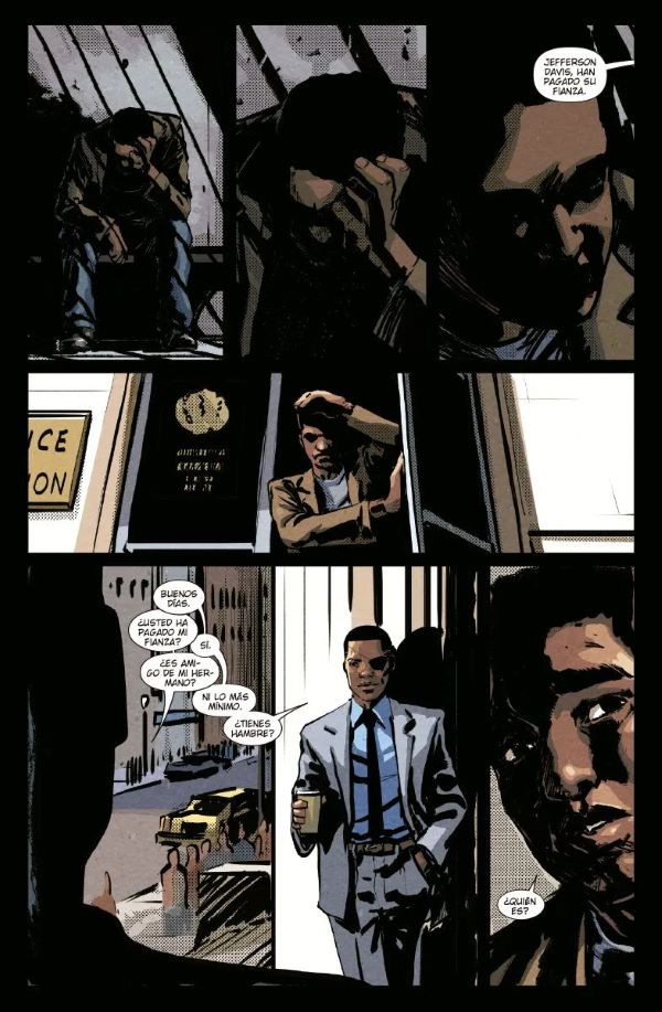 Desde que esto ocurriera, hemos sido testigos de la creciente popularidad del personaje, y por desgracia de varios reseteos editoriales, destinados sin duda alguna a que los nuevos lectores pudieran llevarse a casa un cómic de Miles Morales con un número 1 en la portada, pero que, para los lectores de toda la vida, acostumbrados a que Bendis vaya desarrollando sus historias a un ritmo pausado, puede llegar a desesperarnos. El veterano guionista ha sabido sortear este tipo de imposiciones editoriales, para traernos cada mes una nueva ración de las aventuras de esta versión adolescente del personaje, que nos ha conquistado a todos desde sus primeras páginas. Uno de los pocos cabos sueltos que quedaba por contar se refería al padre de Miles, a quien se dedican los primeros números del tomo, en los que con el estilo habitual de Bendis, iremos saltando entre presente y pasado, para conocer así todas las piezas del puzle.