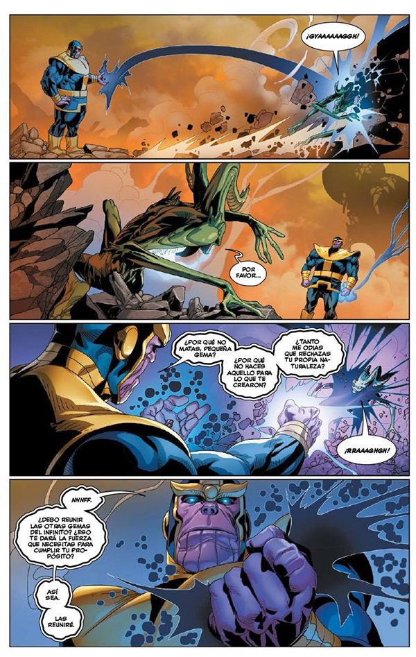 Sin embargo, a la hora de contarnos el siguiente capítulo de su saga cósmica por excelencia, Marvel ha optado por hacerlo a la vieja usanza, en forma de varios anuales, en los que Dereck Landy, Sara Pichelli y Salvador Larroca, se hacen cargo del comienzo y el final de la saga, ayudado por un nutrido grupo de guionistas y dibujantes. Las series elegidas son Thanos, Spiderman, Thor, Ms Marvel, Lobezno, Hulk, Caballero Luna, Spiderboy y Los Vengadores. Esto significa que la práctica totalidad del Universo Marvel va a estar afectado por esta nueva saga.