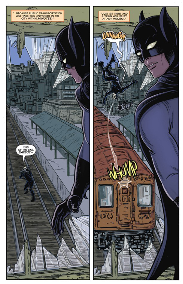 Russell escribe con la misma contundencia que lo convirtió en autor de culto con Los Picapiedra: sus críticas sociales son directas, casi didácticas, y no dejan espacio a la ambigüedad. Gotham se erige como un espejo deformante de los excesos del capitalismo tardío, y los villanos de siempre se convierten en caricaturas reconocibles de males muy reales: desahucios, drogas, desigualdad, corrupción política y económica. Puede sonar obvio, incluso dogmático, pero el autor lo hace con un tono cercano, casi de colega que comparte una cerveza y constata lo evidente. Esa sinceridad desarma y otorga a la obra una energía distinta de la que suele dominar en el cómic mainstream de superhéroes.