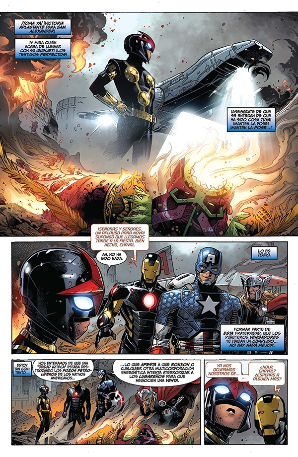 Aaron construye un relato con aroma de novela negra salpicada con superhéroes, donde Nick Furia asume el papel de un detective crepuscular en busca de respuestas que nadie parece querer oír. Frente a la tendencia habitual de los macroeventos marvelitas, este relato consigue mantener una identidad propia, casi independiente de sus ramificaciones. Su estructura de thriller conspirativo se sostiene gracias a un elenco atípico -con equipos improbables formados por Doctor Extraño y el Castigador, Pantera Negra y Antorcha Humana, o Emma Frost y Hulk- que permiten explorar interacciones poco vistas y refrescar dinámicas entre personajes ya muy trillados.