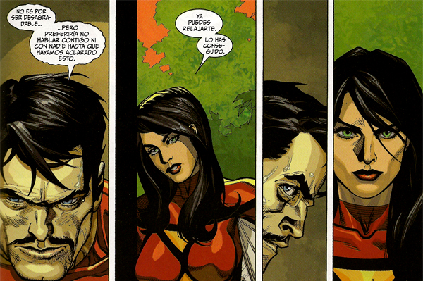 Precisamente este personaje es quien se lleva la palma en el presente número, desvelando un secreto que le da un nuevo rumbo a la saga. Esta sorpresa mayúscula (quizá no tanto para aquellos que se leyeran el “Nuevos Vengadores” #37), consigue primero descolocar al lector y segundo volver del revés absolutamente todo lo que de ella sabemos desde que el autor de “Jinx” le pusiese las manos encima. Tras leer dichas páginas, es casi imposible resistirse a la tentación de repasar de inmediato nuestra colección y ver como anteriores historias comienzan a adquirir un diferente y siniestro matiz.